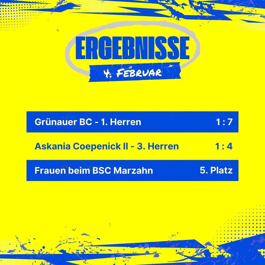 Ergebnisse vom 28. – 30.01.22: Pokalaus für Ü32, 2. Herren unterliegt erneut 0:1
