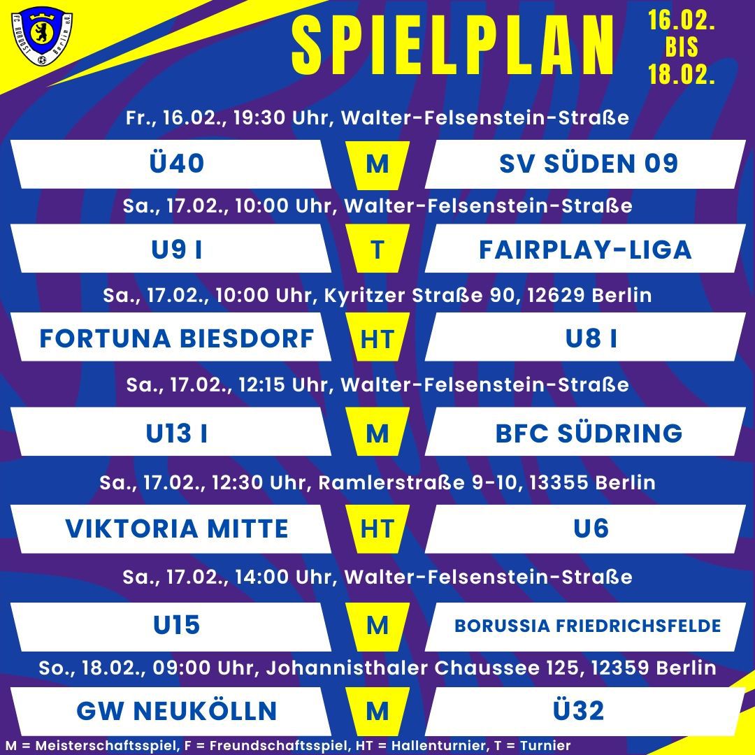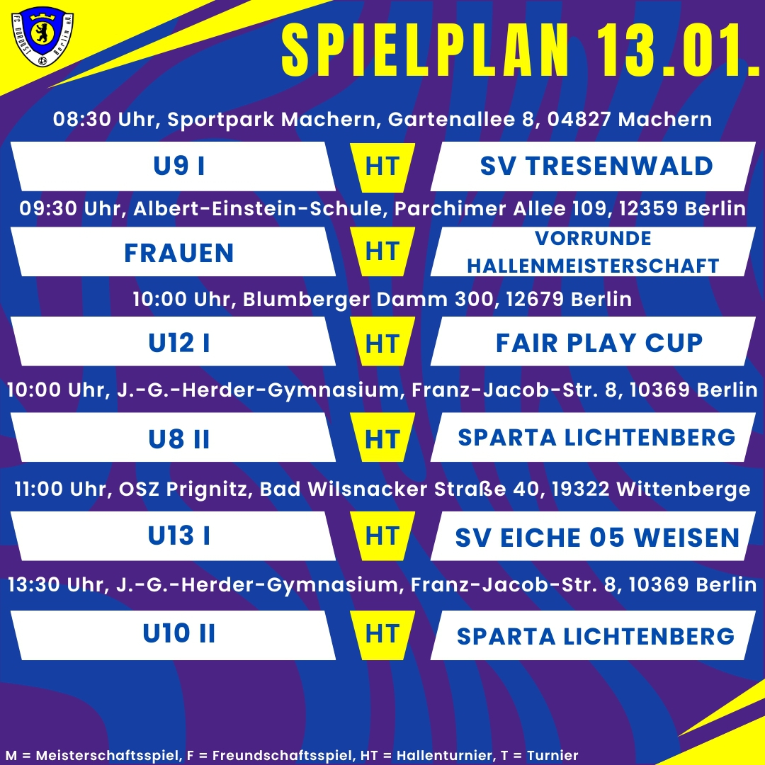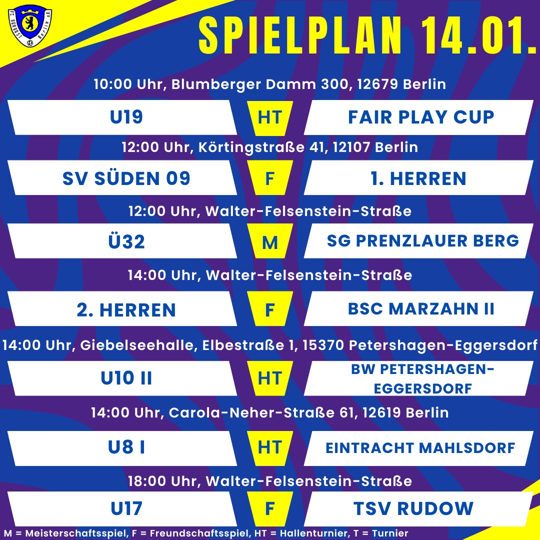Der Berliner Fußball-Verband hat heute witterungsbedingt alle Spiele bis einschließlich Sonntag, den 18.12., abgesetzt. Der…